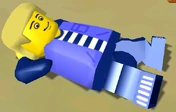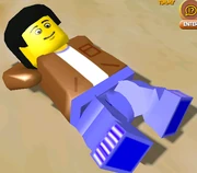 Brian Shrimp is a minor grapheme in Island Xtreme Stunts. He is homeless, so he lives in a barrel (he claims he used to alive in a fish crate, and can't stand up the smell of fish anymore). Unlike other characters, he does not play any role in the main story. According to an early transmission draft and the script, he was supposed to appear in LEGO Island as ane of three surfers. Yet, the developers cut him from the game for unknown reasons.